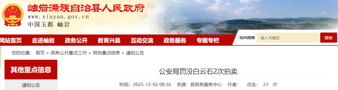 受委托,岫巖滿族自治縣產權交易中心有限責任公司(鞍山市金鳴拍賣有限公司)定于2025年12月9日上午10時在中拍平臺依法對下列標的進行第二次拍賣: